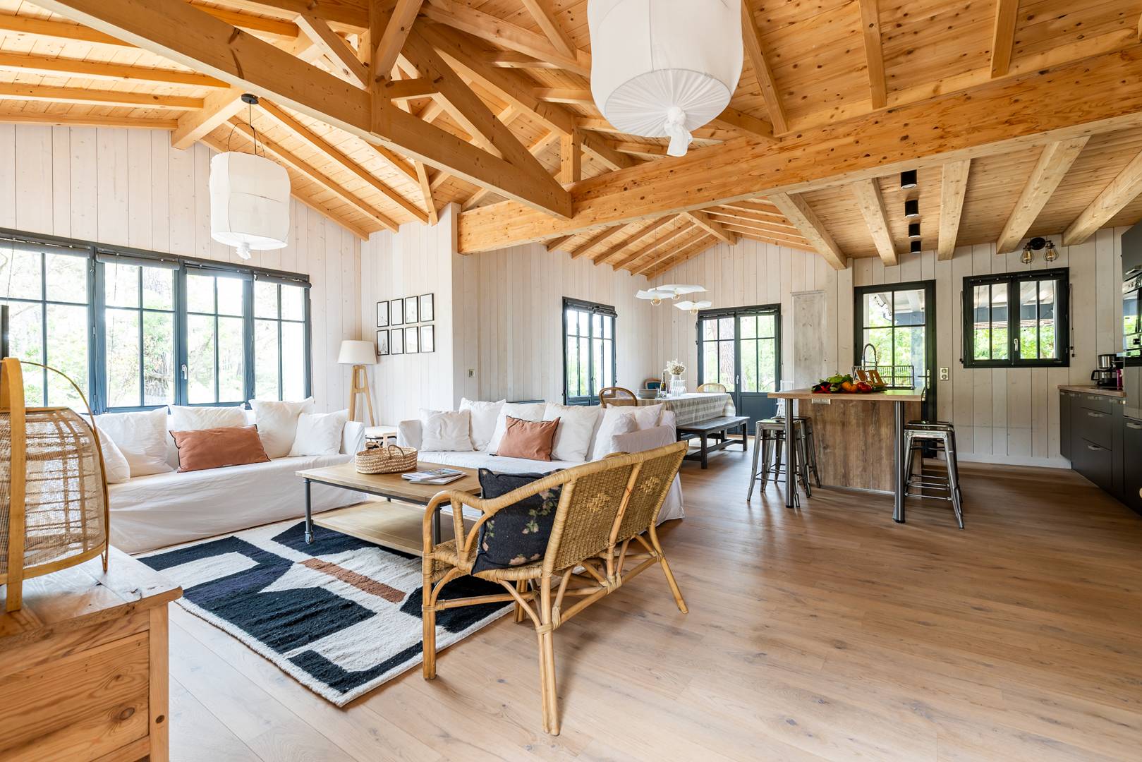 Cette villa de 160m2 rénovée récemment et décorée avec goût est composée d'un bel espace de vie ouvert sur l'extérieur, une cuisine américaine entièrement équipée avec un îlot central, une salle à manger et un salon chaleureux. Côté nuit, vous trouverez 5 chambres et 4 salles d'eau accompagné de 4 WC. Idéale pour passer de bons moments en famille.