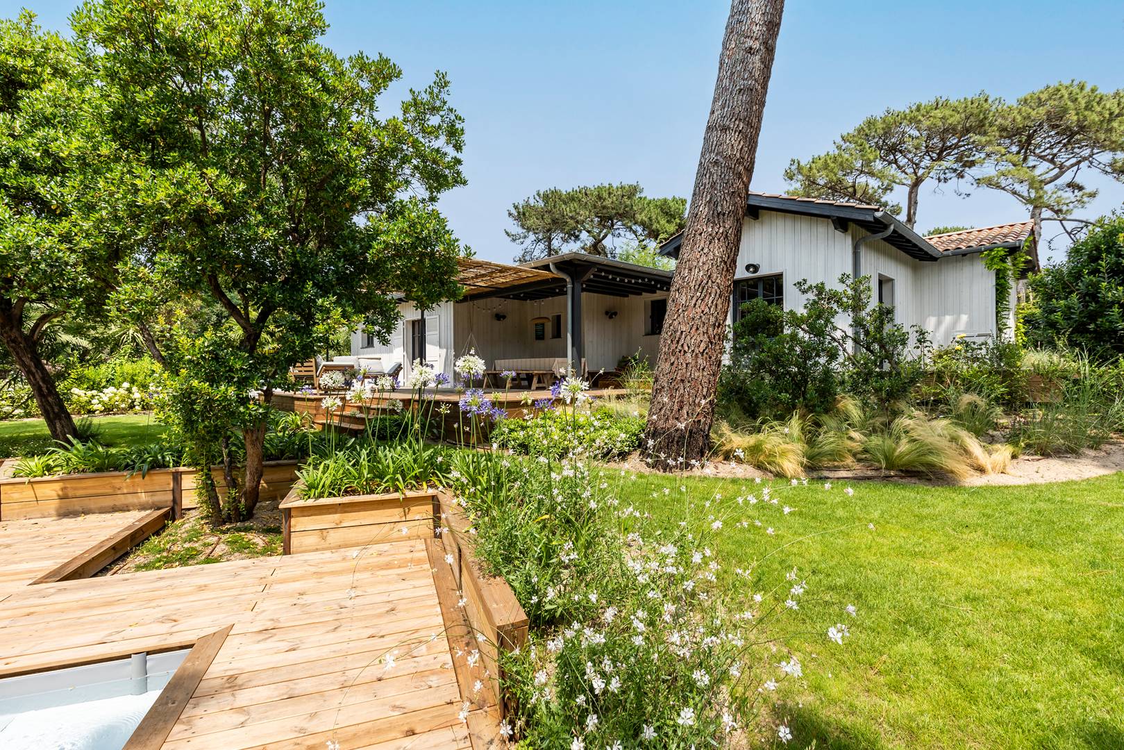 Vous serez charmés par cette villa nichée dans un écrin de verdure, située à quelques pas seulement de la célèbre Plage des Américains. Dans un quartier calme vous pourrez profiter d'un beau jardin avec piscine (de 8.6x3.6 chauffée et sécurisée par un volet roulant), de spacieuses terrasses aménagées sur plusieurs niveaux avec des coins détentes pour prendre le soleil ou bien déjeuner en famille.